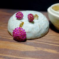 Like the pendant, the stud earrings are also conical. This way of crafting the bezels presents the whole set a definitive look of antique jewelry that is exotic, bohemian.