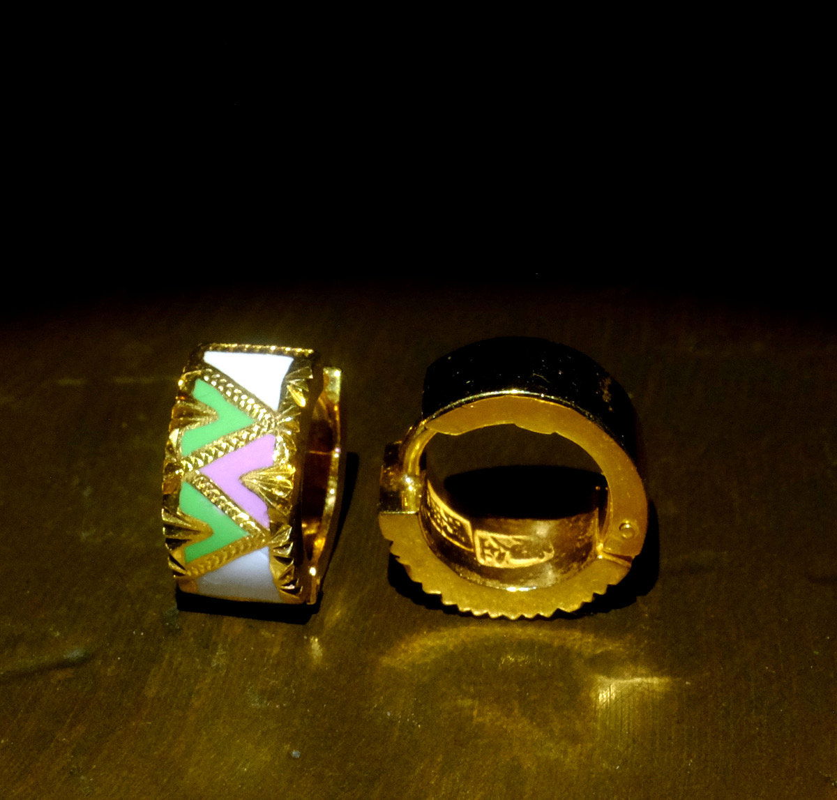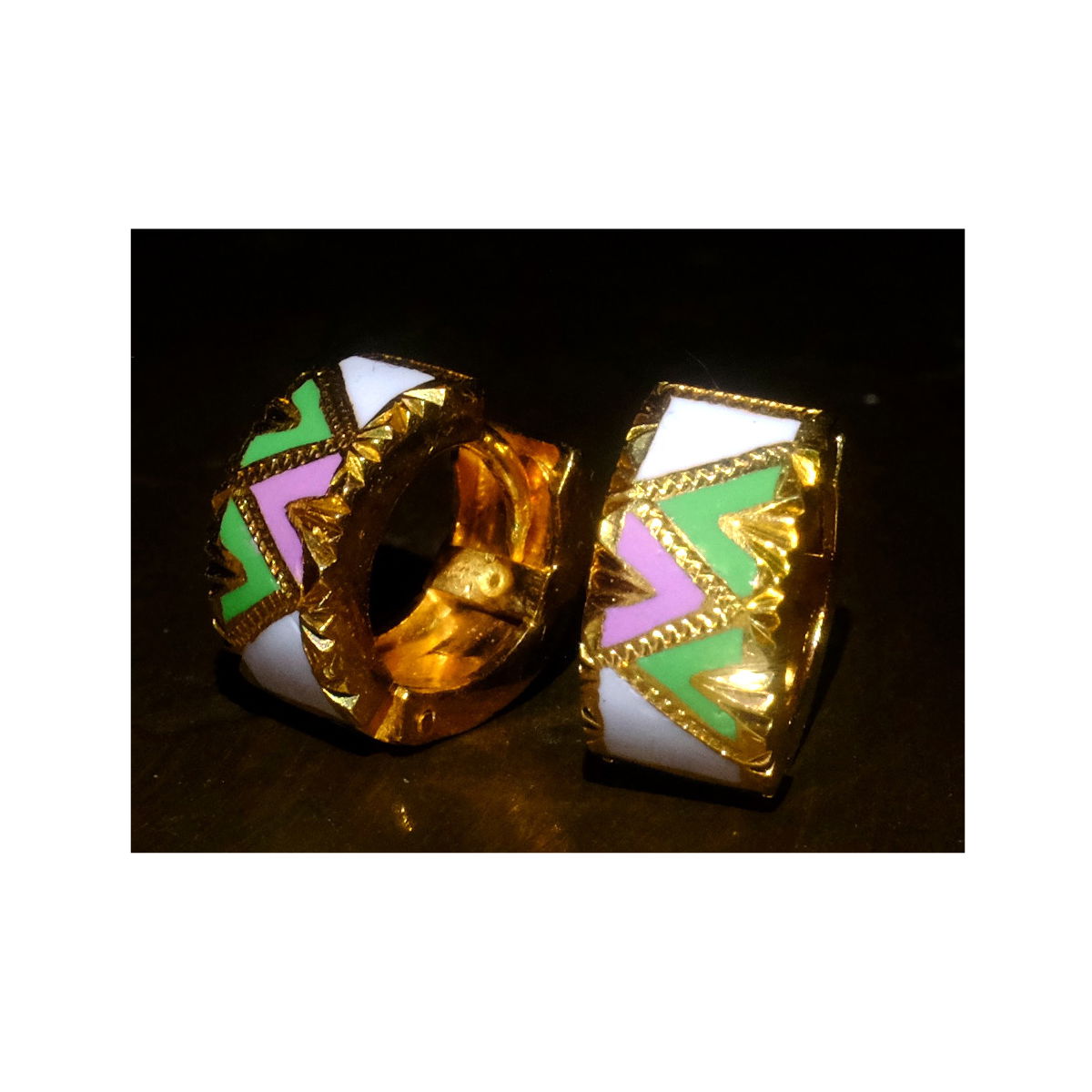 Chinese Enamel Huggie Hoop Earrings 22k