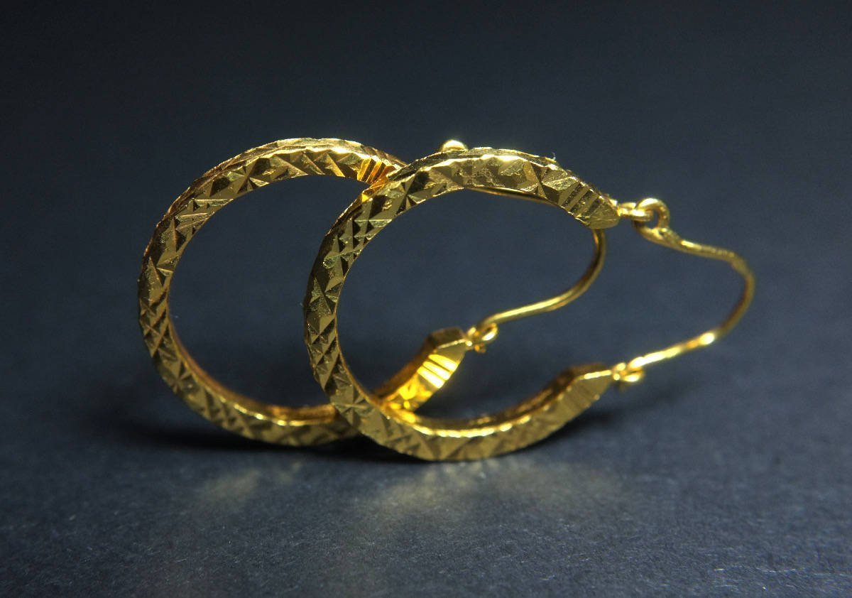 Gold Emerald Huggie Earrings, Antique Gold Jewellery