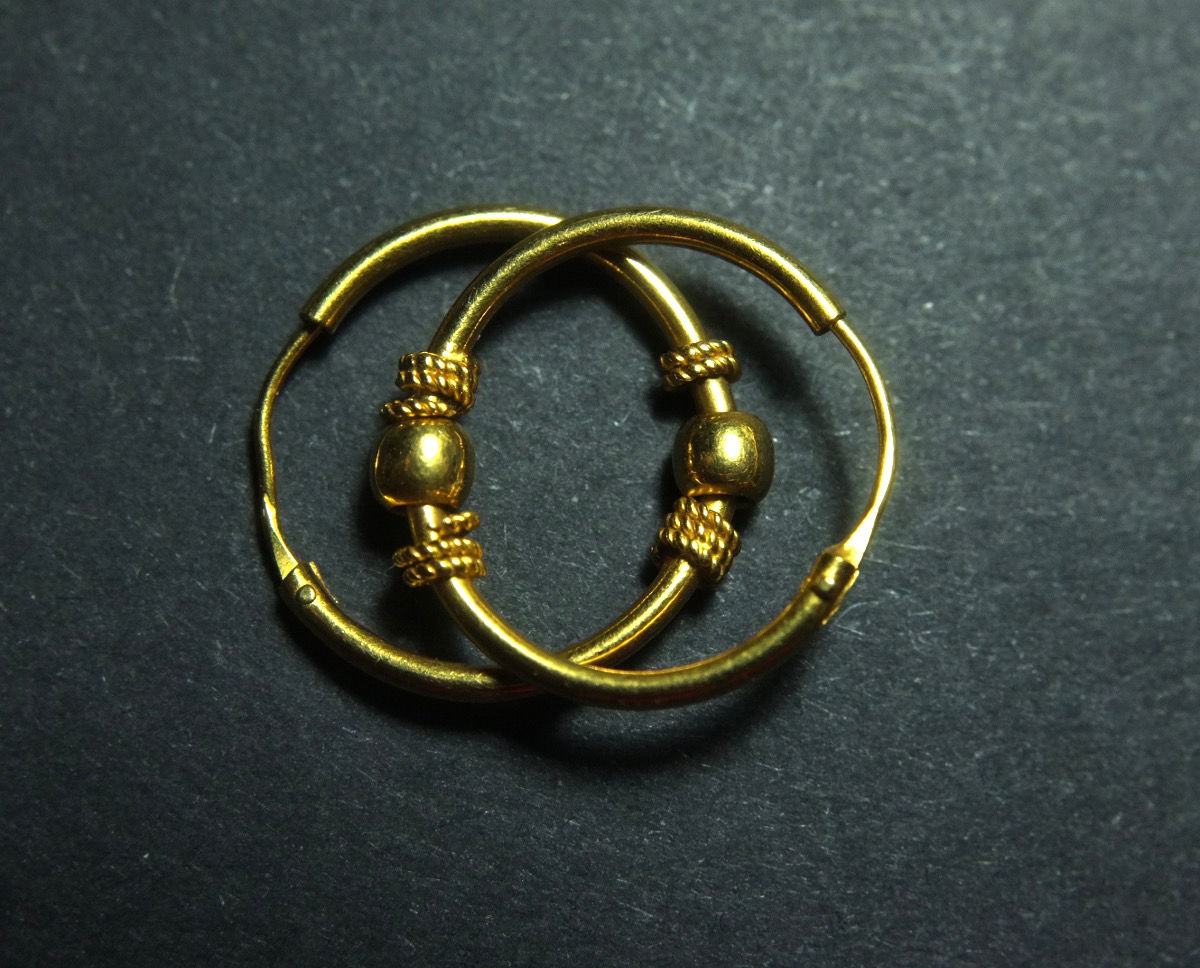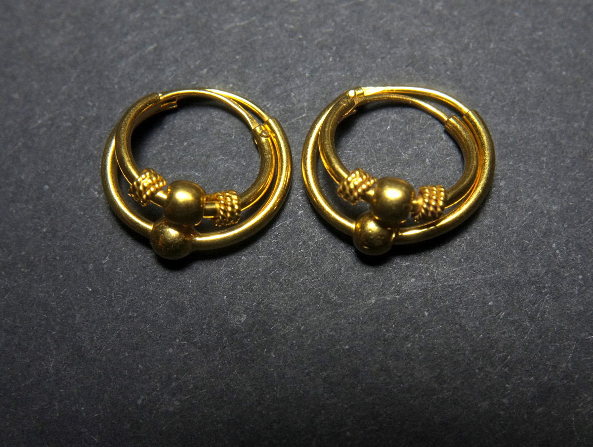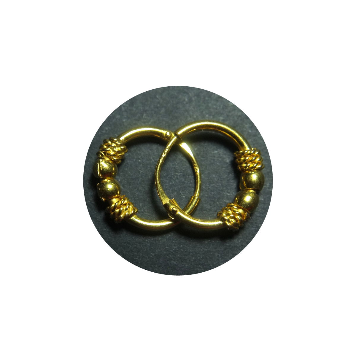 Gold Diamond Huggie Earrings, Vintage Peranakan Jewellery