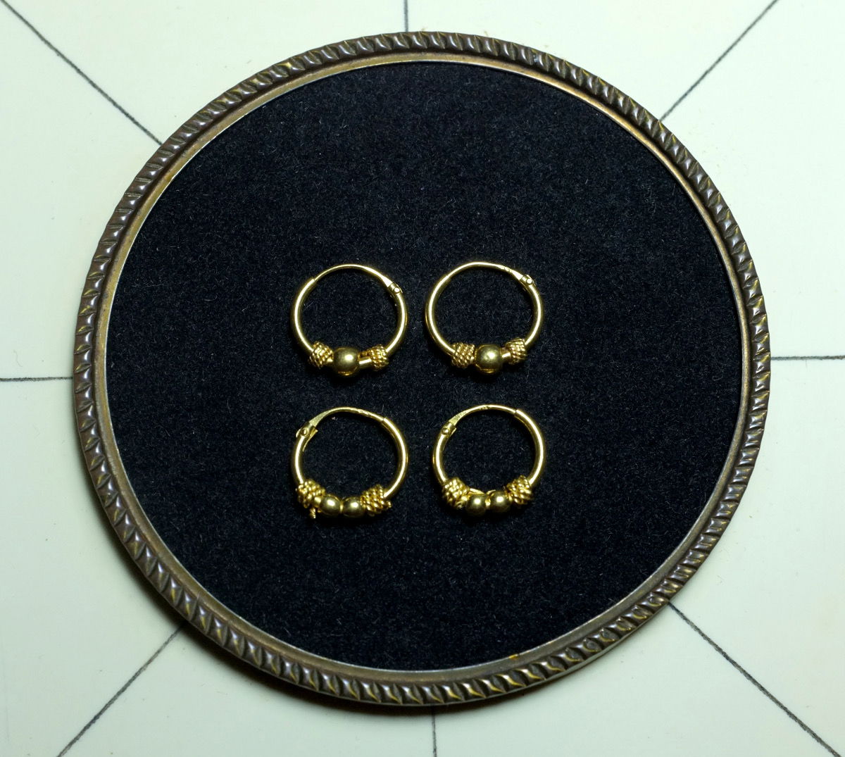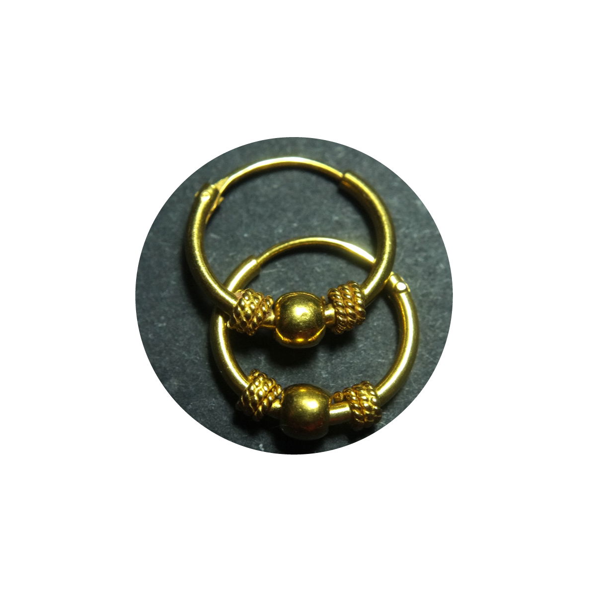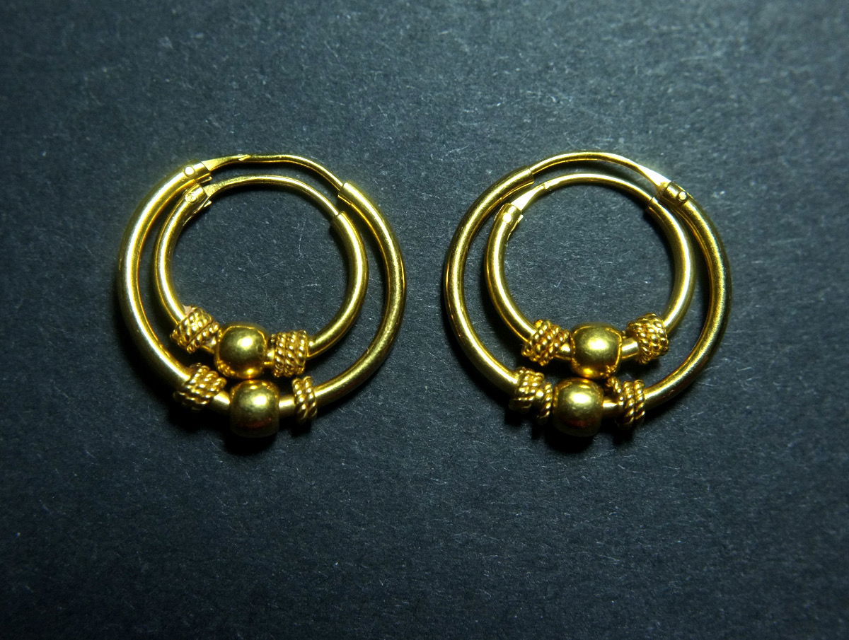 Gold Diamond Huggie Earrings, Vintage Peranakan Jewellery