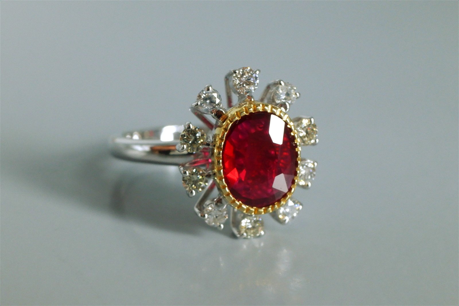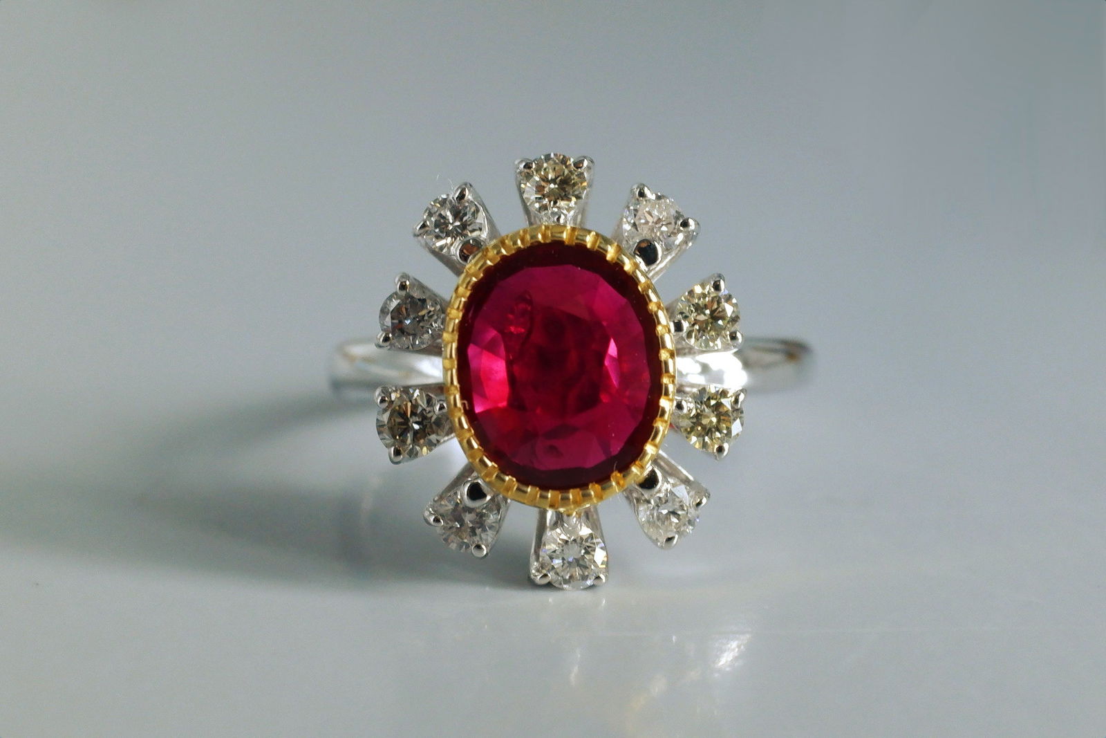 2ct Unheated Vintage Ruby Flower Ring 18k
