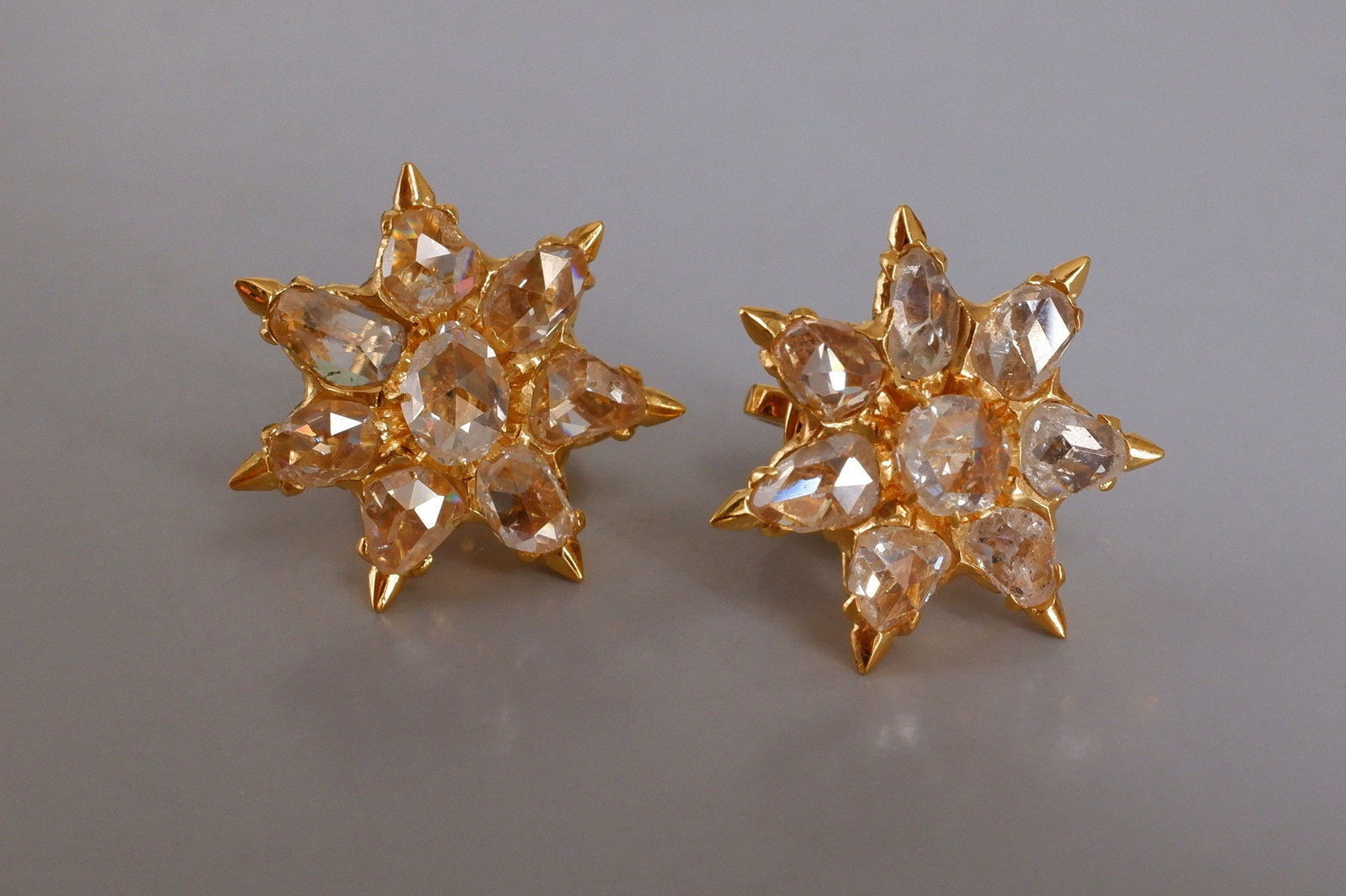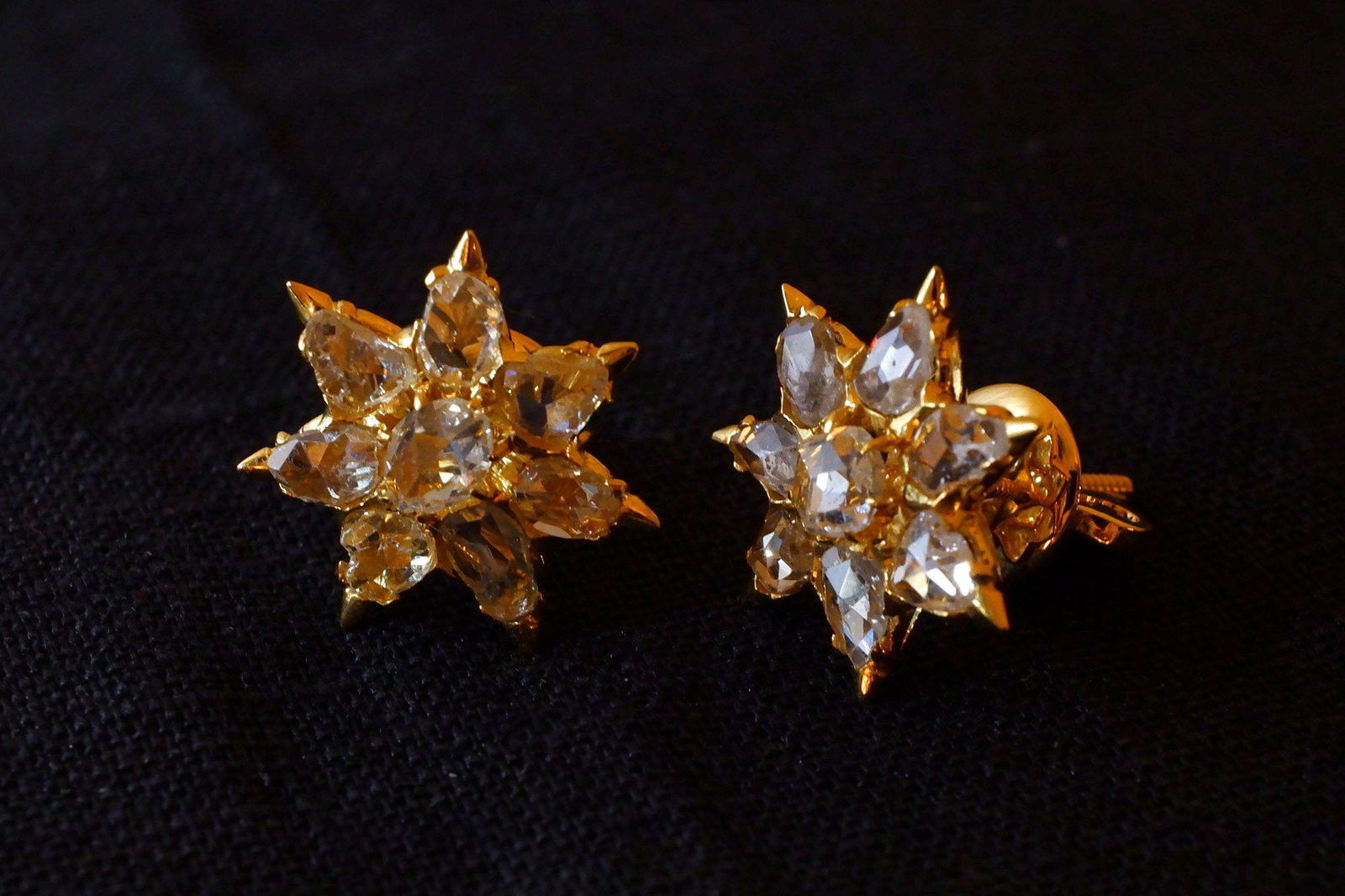 Antique Rose Cut Diamond Earrings Chinese 20k