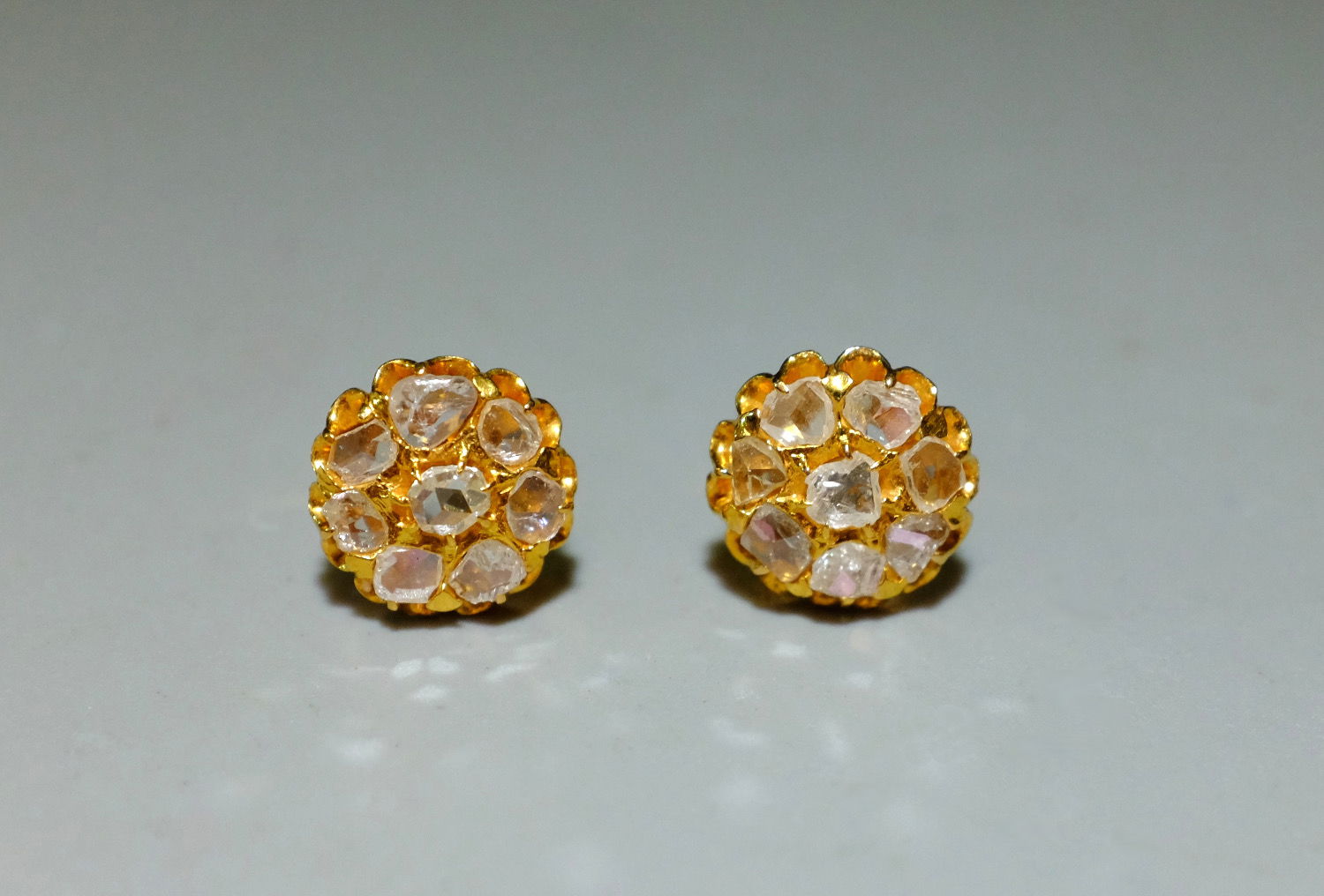 Hand Cut Rose Cut Diamond Earrings Antique 20k